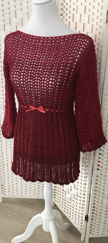 Dieser Babydoll-Pulli ist individuell anpassbar und kann mithilfe der Anleitung an Deine gewünschte Größe angepasst werden und zum Beispiel auch als Kleid gehäkelt werden.