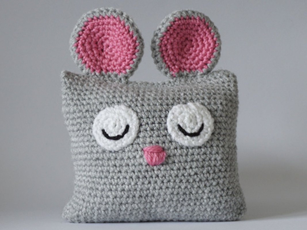 Add a touch of cuteness to your home with these detailed crochet pattern for an irresistible mouse cuddly cushion!