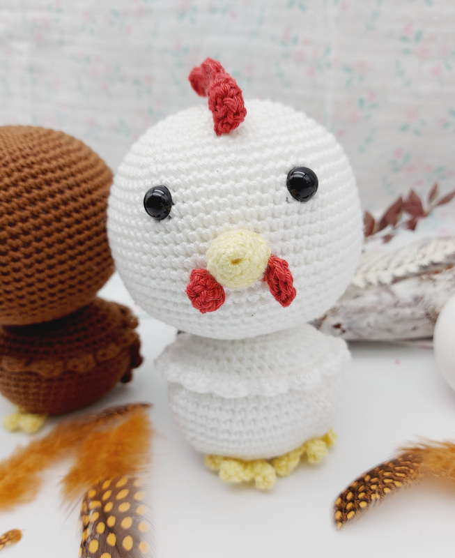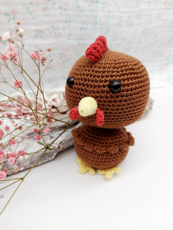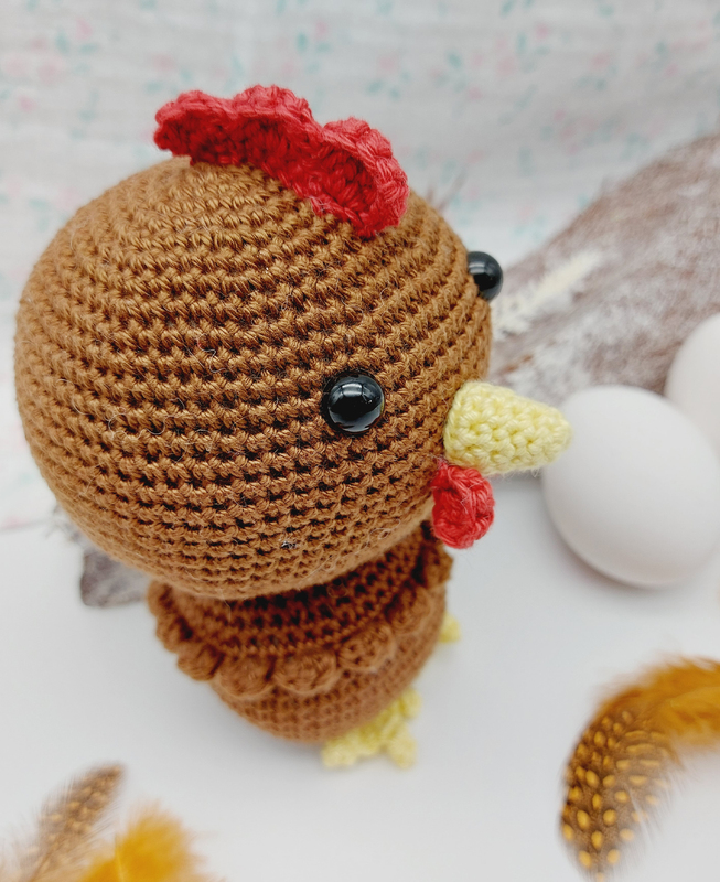 Mit dieser ausführlichen Anleitung könnt ihr euch ganz einfach selber eine süßes Huhn häkeln. Mit vielen Bildern detailliert erklärt.