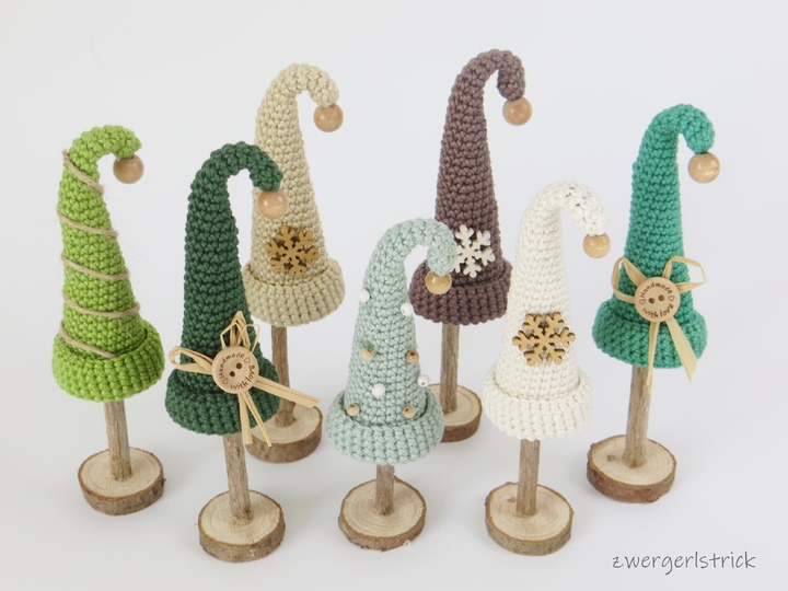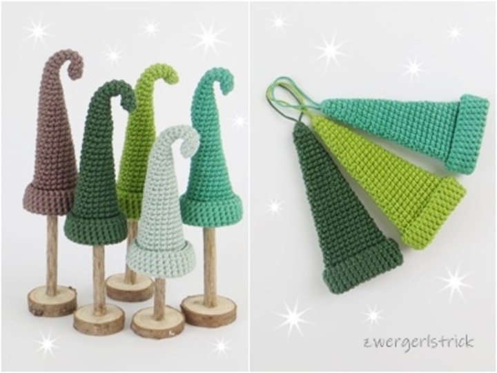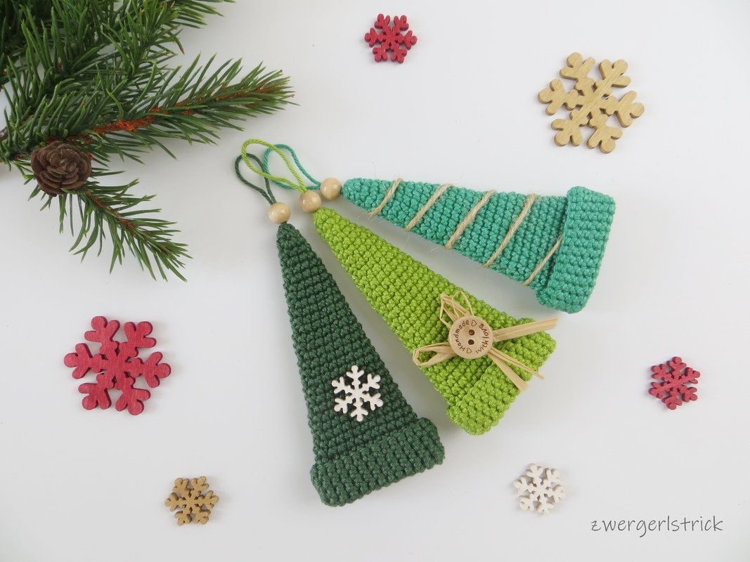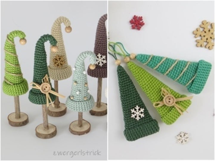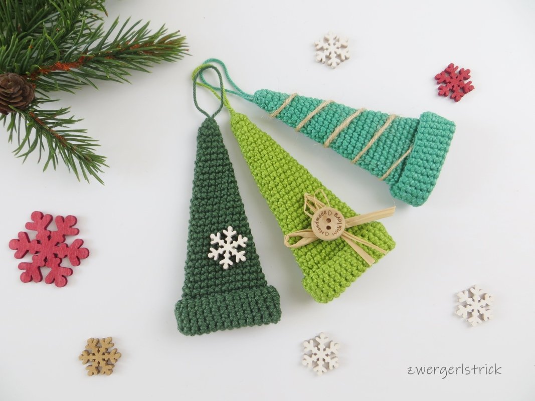 Häkelanleitung für kleine Zipfel-Tannenbäumchen und Anhänger (ca. 9 cm)