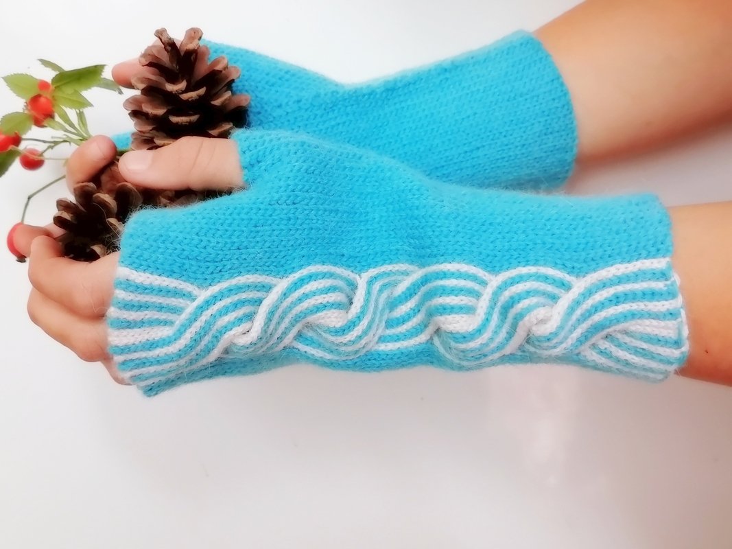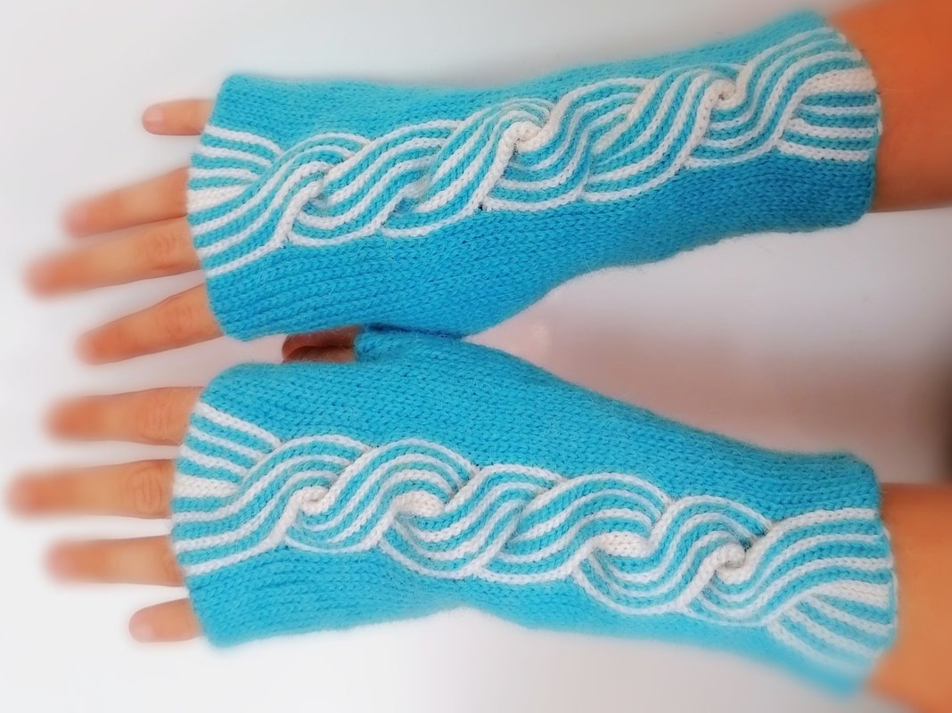 the pattern is for fingerless gloves, which you can make of your choice from two different weights of yarn - #4 Medium or #1 Fingering.