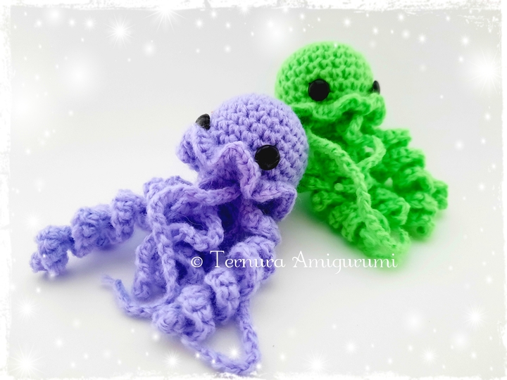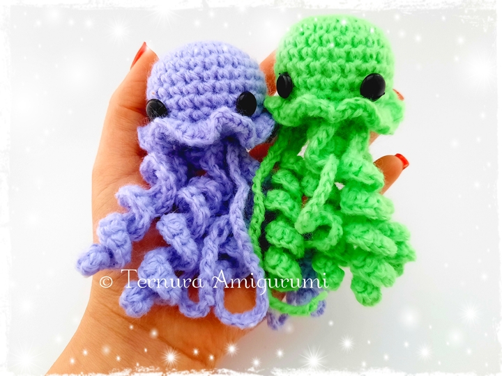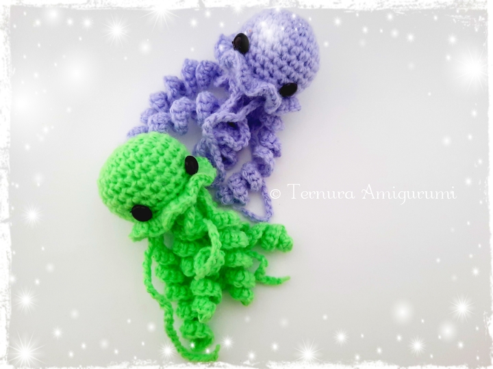 I have fish in the house and I have a plastic jellyfish for decoration ... they look very nice with the movement of the tentacles! Here I leave you with this lovely crochet pattern where you can make the jellyfish of the color you want, you can even make the tentacles in different colors. Have fun doing it yourself, you can even hang it in the car! The finished dimensions are approx. 6 cm x 13 cm. The size can vary depending on the needle and thread size.