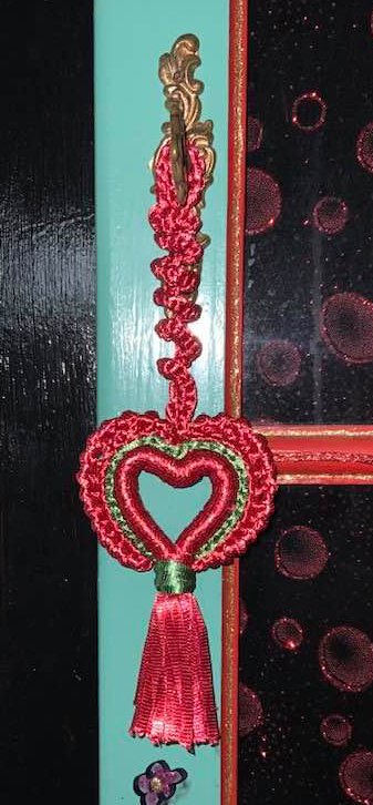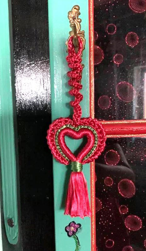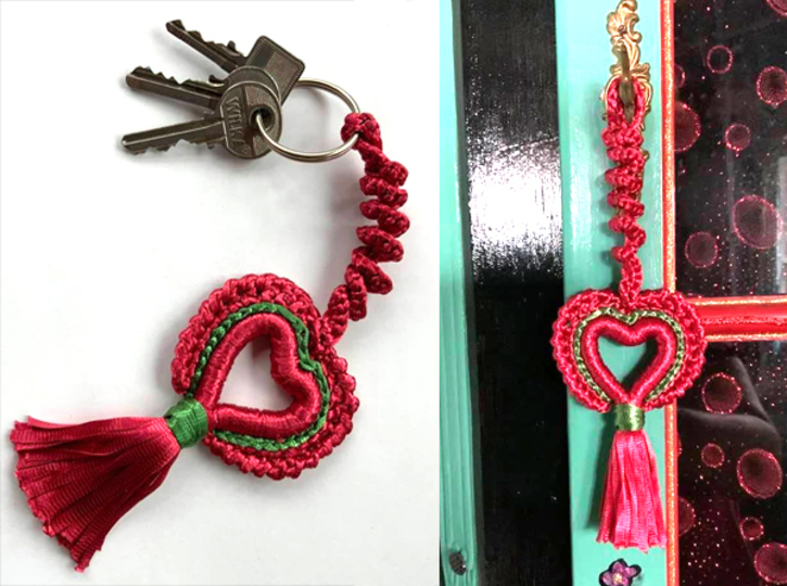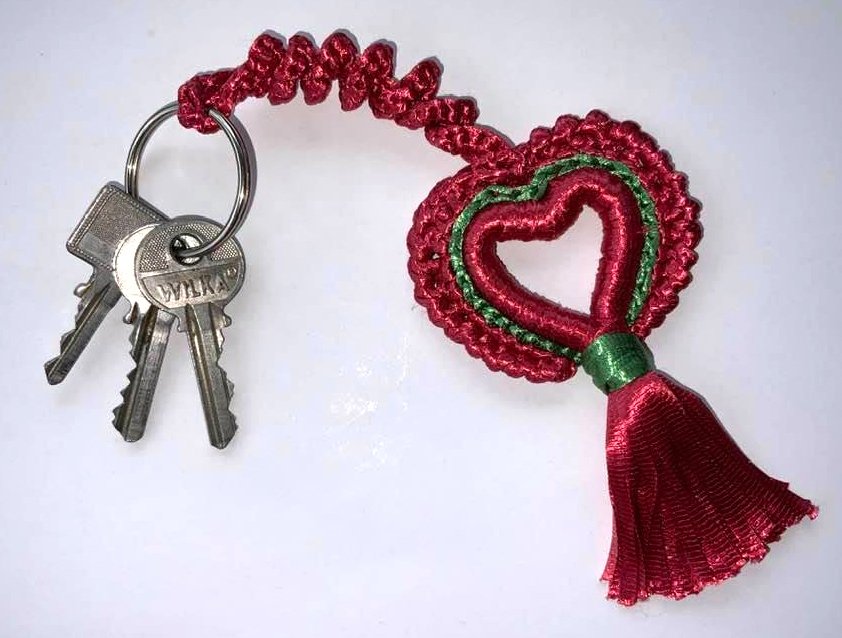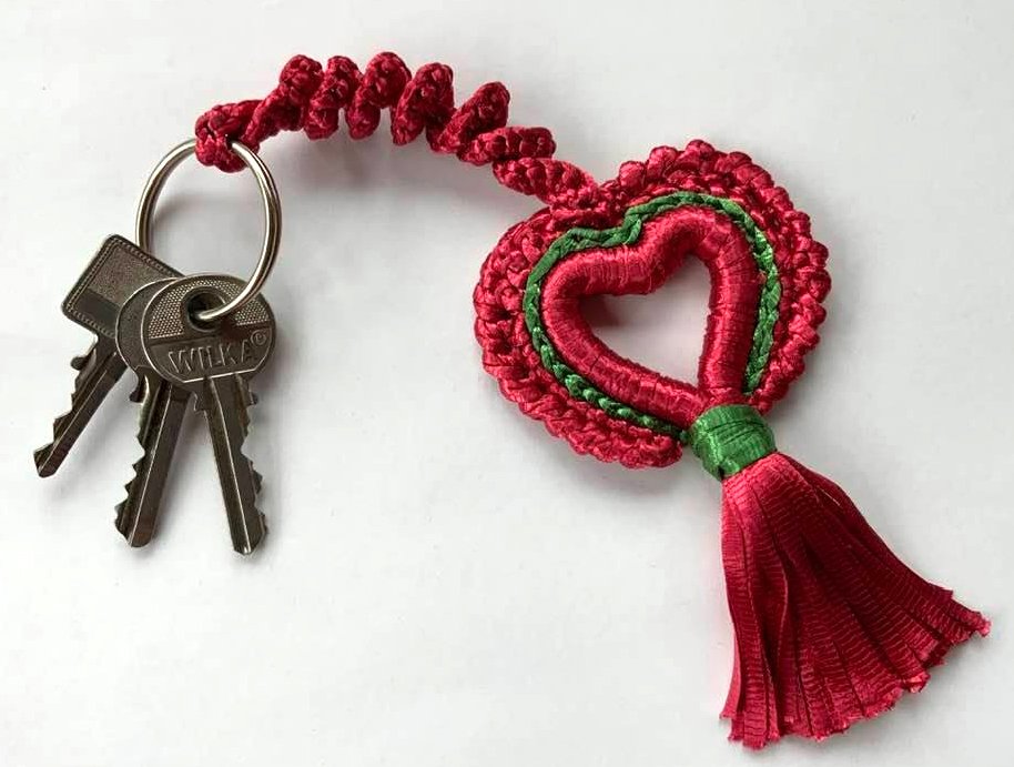 der fertige Schlüsselanhänger HERZ ist 21 cm lang + 7 cm breit