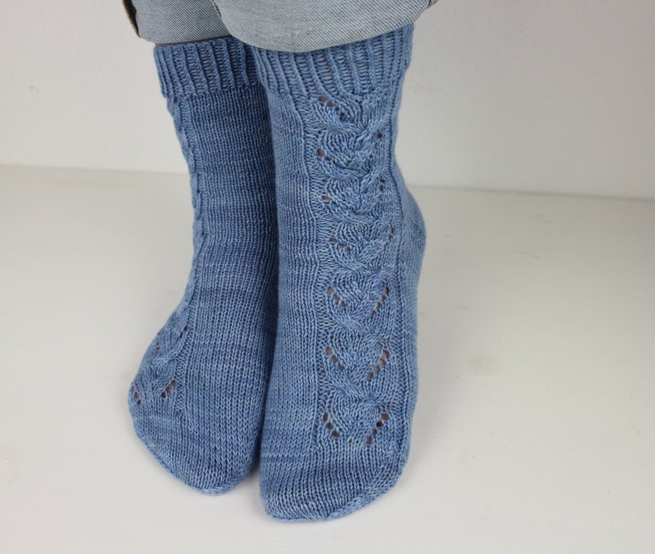 Yarn: 1 skein of Tausendschön sockyarn 4-ply (75% wool, 25% polyamids) 420 meters (459 yards) 100g, 1 skein, shown in colorway „Curry“, or 1 skein of Sock Weight yarn.