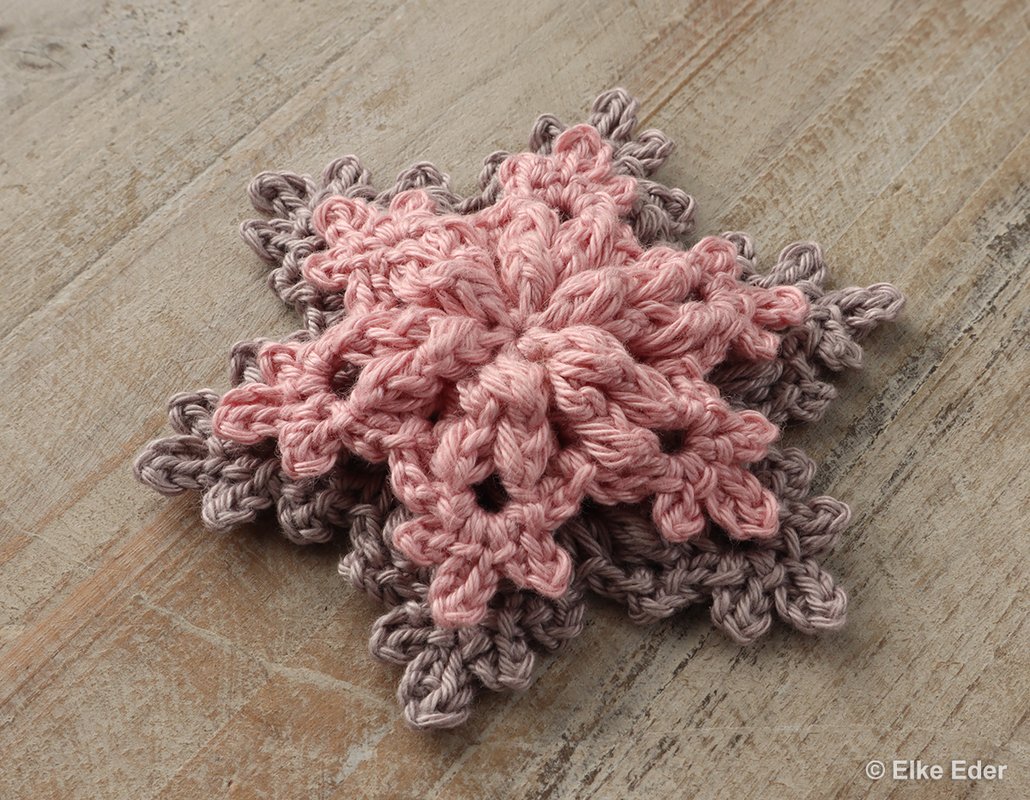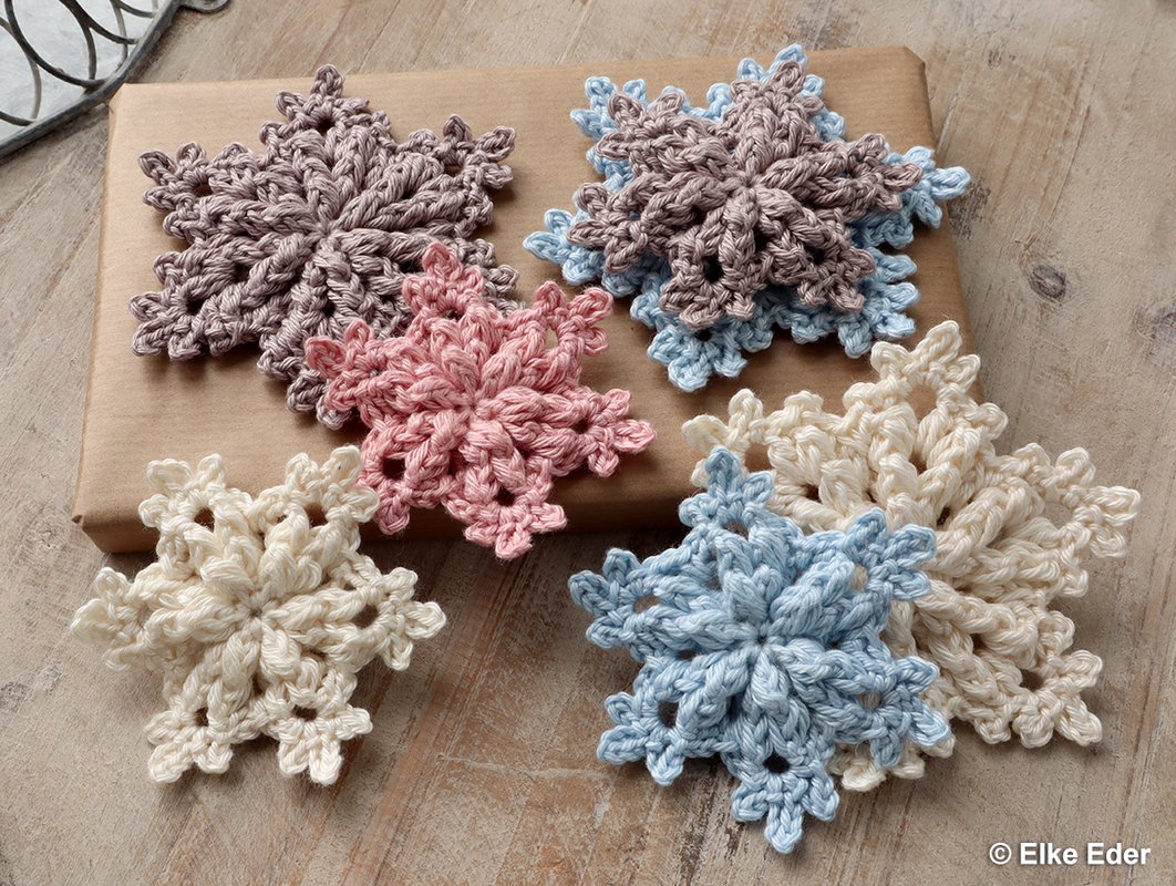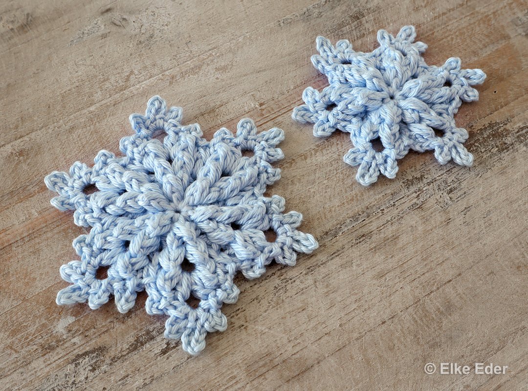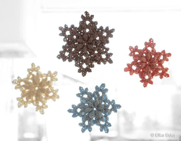 A beautiful relief pattern, four or five rounds and some crochet experience is needed to create these two magical snowflakes in no time.