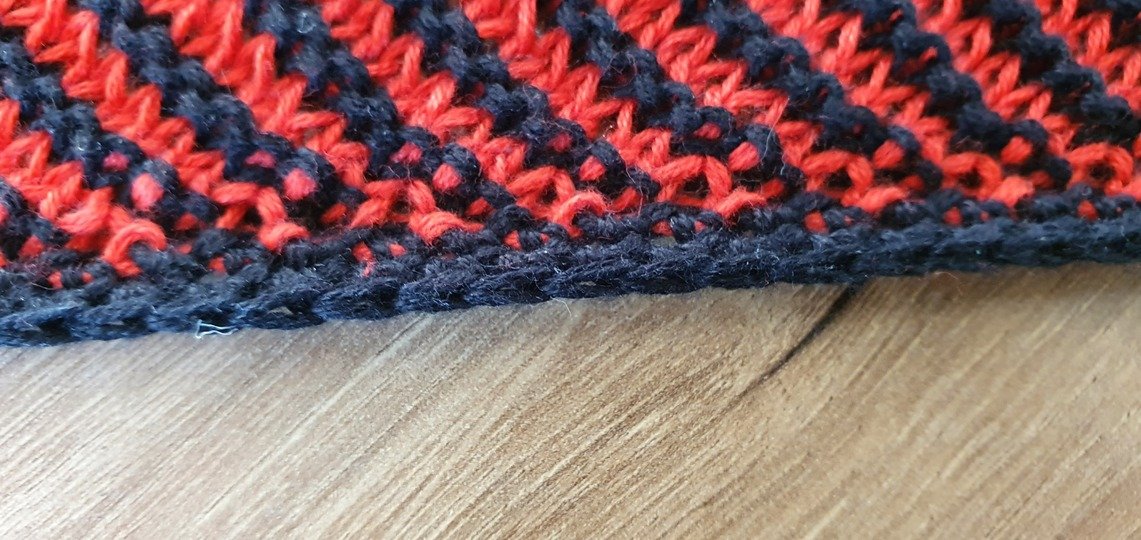 The edging to stabilize the shawl is crocheted using single crochet stitches. It would be helpful if you have some basic crochet skills as well.