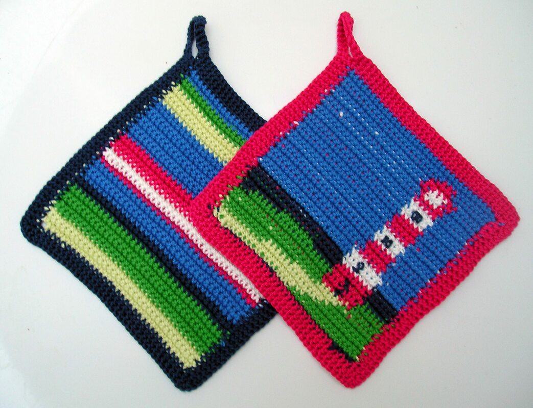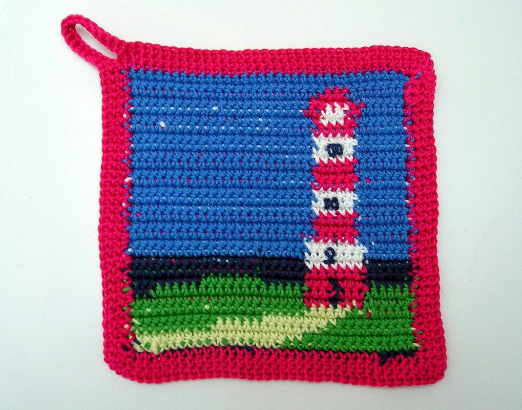Anleitung zum Häkeln des Topflappensets "Leuchtturm"