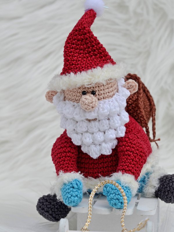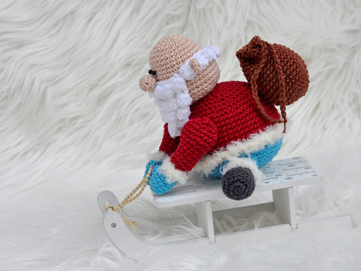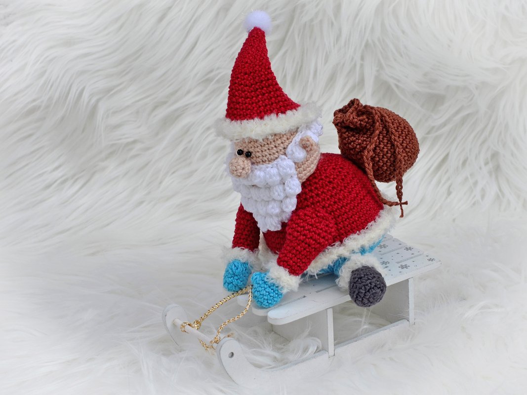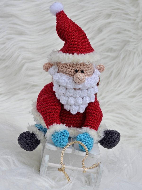Häkelanleitung "Schlitten fahren: sitzender kleiner Nikolaus