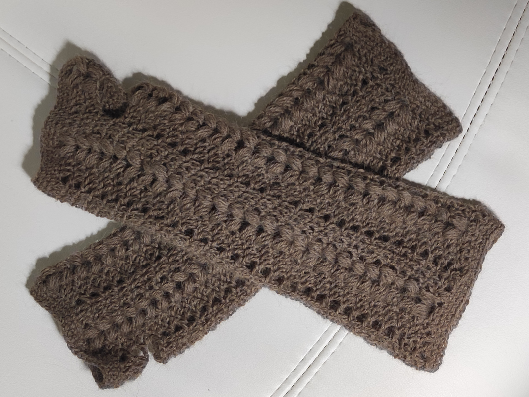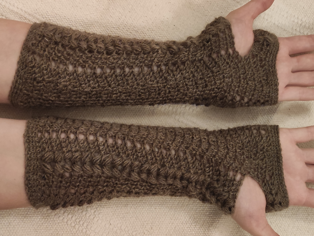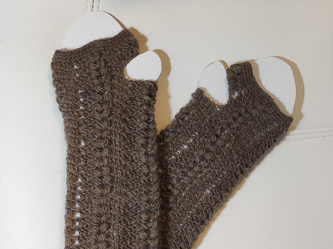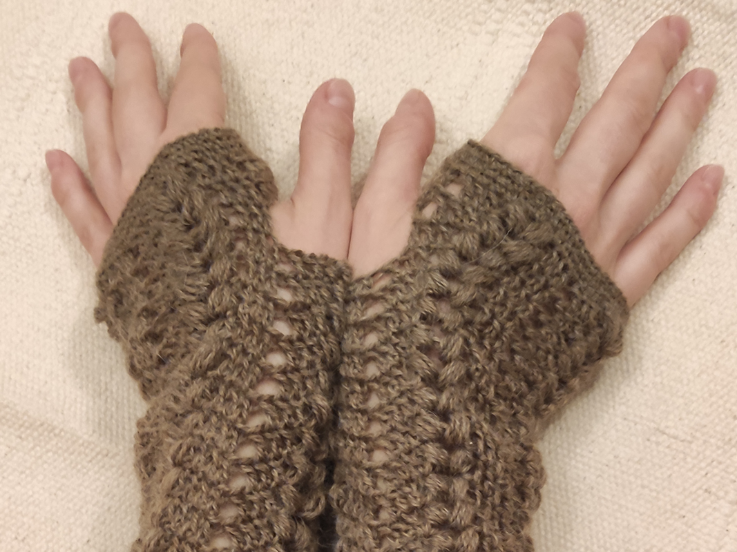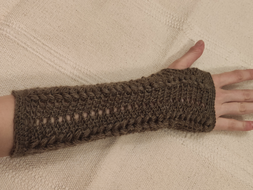 Die fertigen Stulpen erreichen eine Länge von etwa 28 cm und sind für einen Unterarmumfang von etwa 22 cm. Die Länge der Stulpen kann jedoch beliebig angepasst werden.