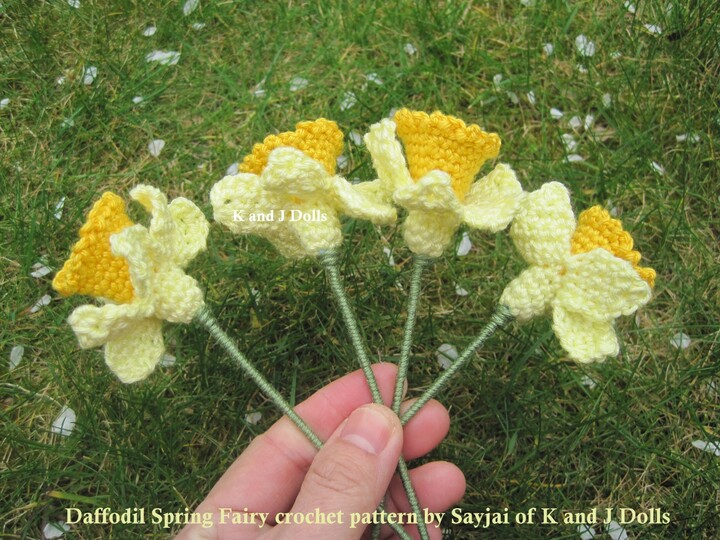 This crochet pattern is 14 pages long with very detailed instructions and 43 images to help you make the Fairy, Daffodils and Watering Can.