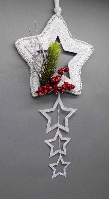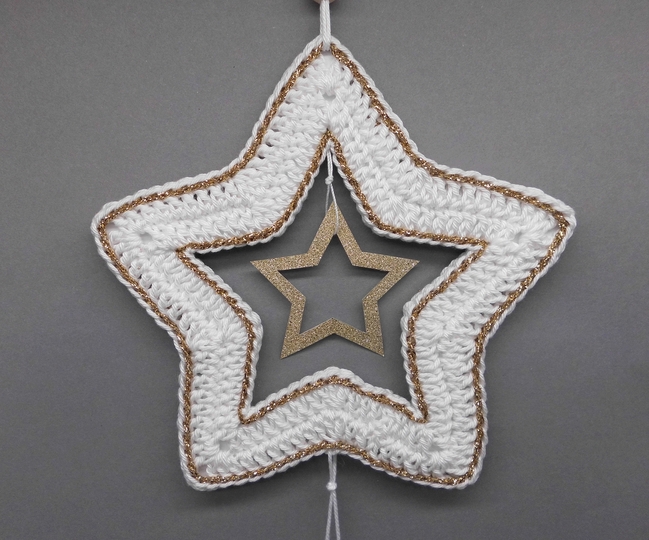 In addition to the written crochet explanation, the PDF file also includes the crochet chart for the star, cutting templates for stars in different sizes and very many detailed photos, so that you can successfully recreate these beautiful and versatile decorative hanger in the decorative variations shown here very easy, step by step.