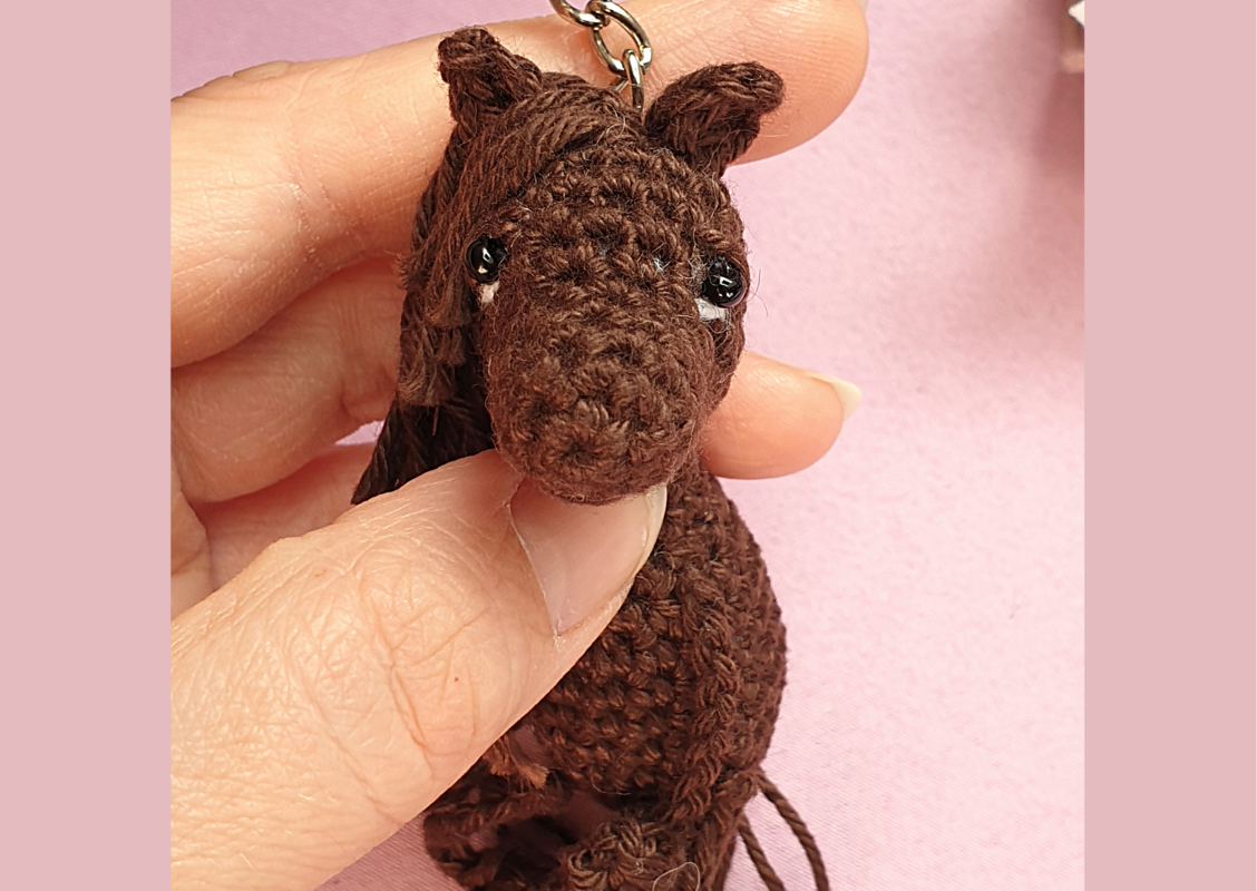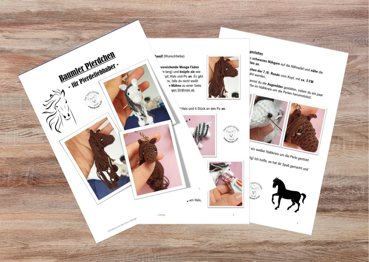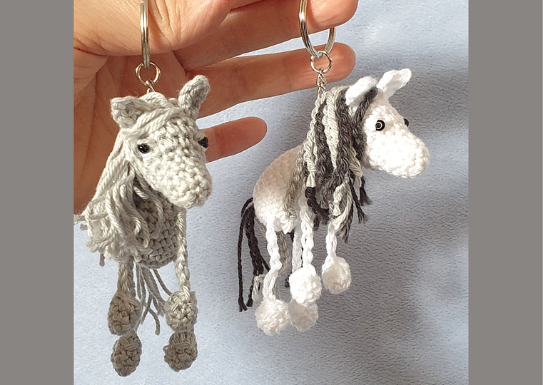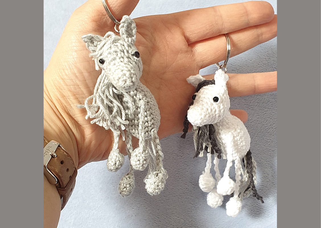 Hier kannst du ganz schnell einen süßen Schlüsselanhänger oder einen Baumler für den Rucksack für kleine Pferdefans häkeln.