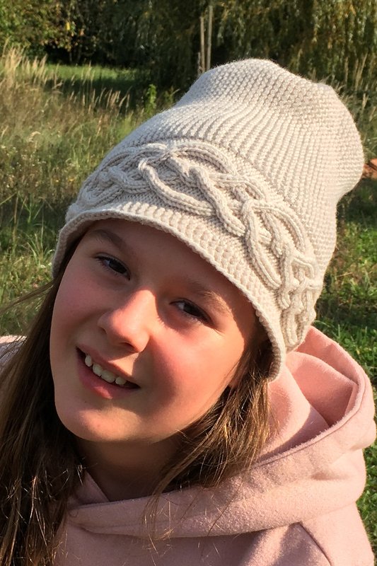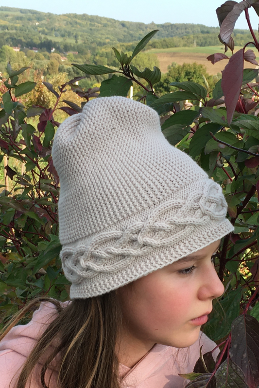 Rosi is a hat decorated with two entwined celtic cables going around the head