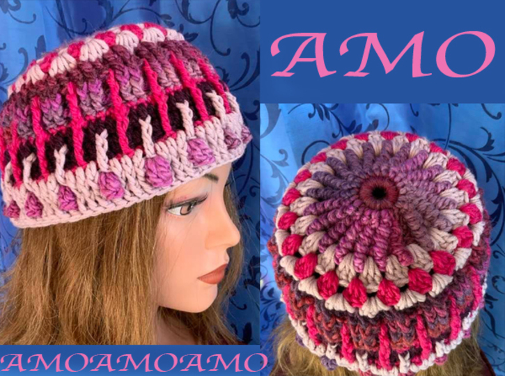 Kappe „AMO“ - ein echt lässige Mütze..mit bezaubernder Rückenansicht....und mit einem tollen Musterfolge...