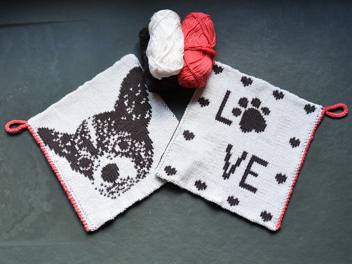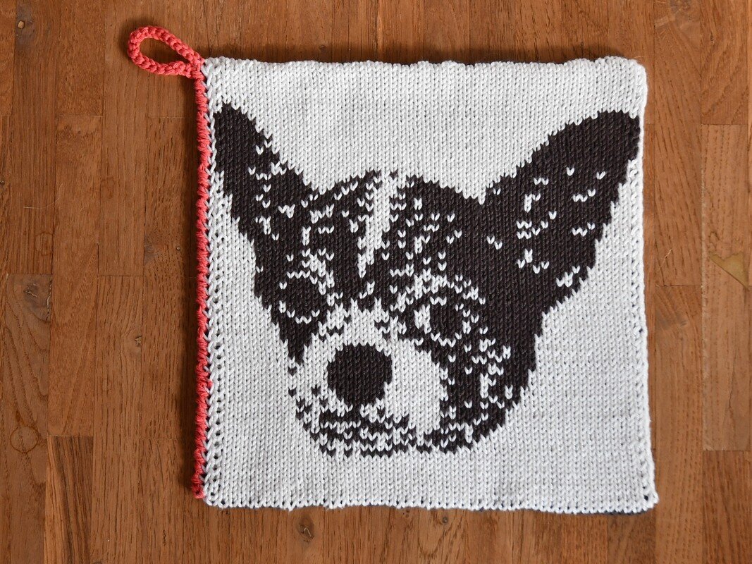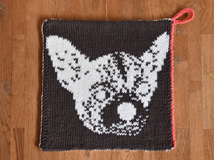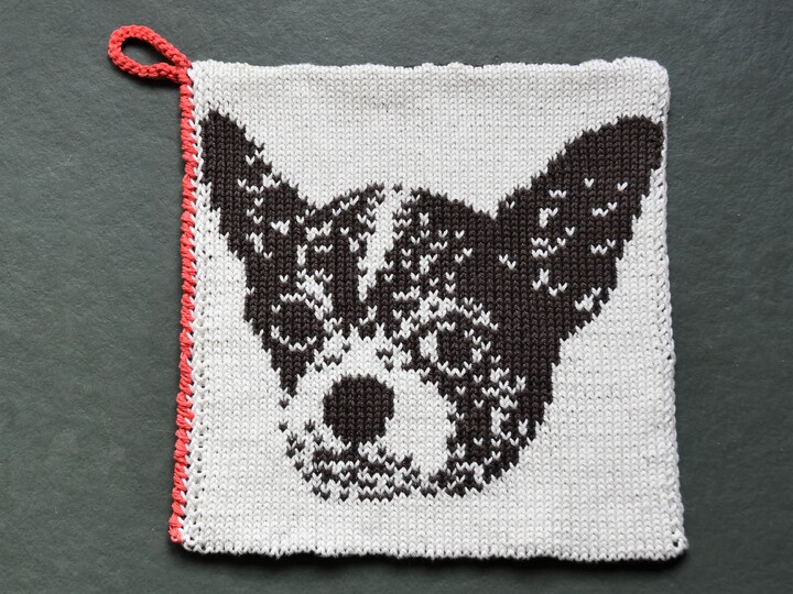 The Chihuahua is known as smallest dog breed of the world. That’s why it fits even on a potholder 😉 These potholders are the perfect kitchen accessories for all Chihuahua Lovers. With double knitting the potholders become quite tight and look good on the backside, too.