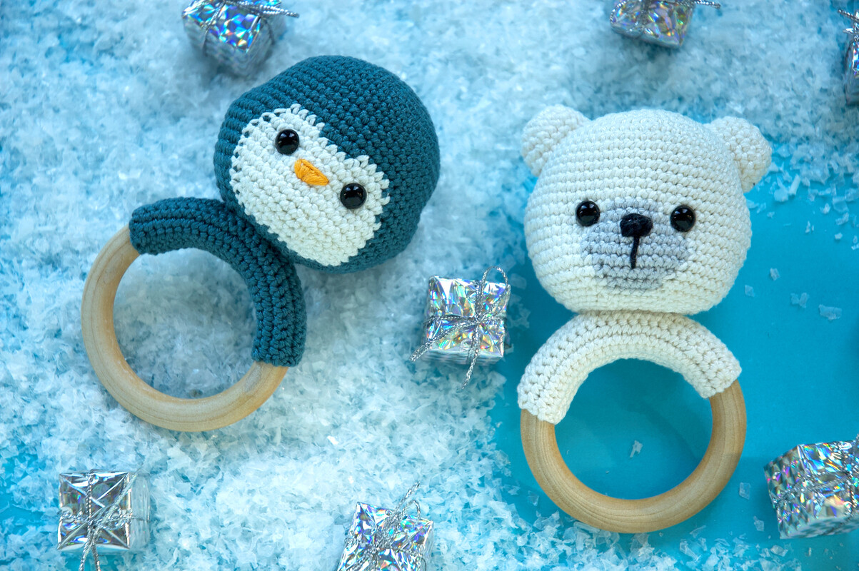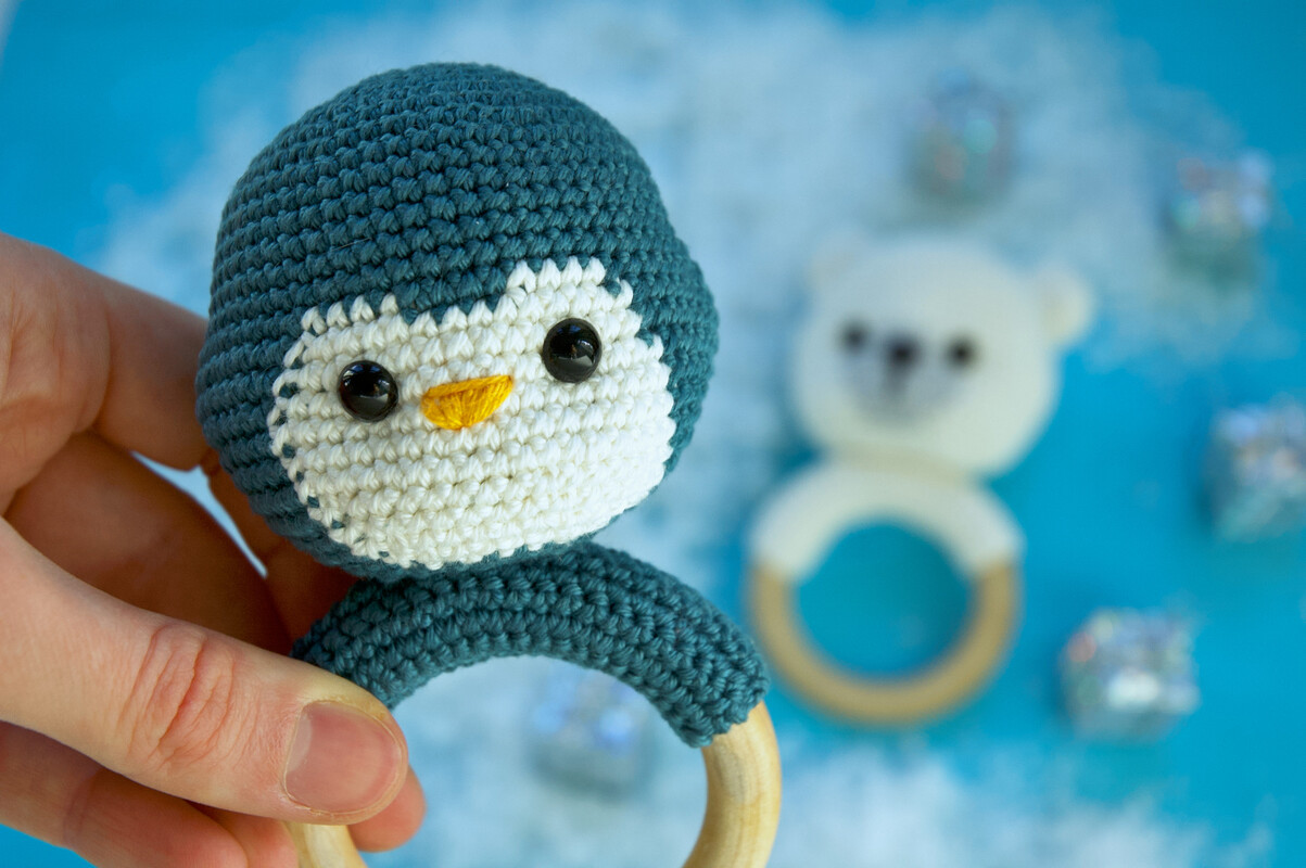 PDF Pattern Set for Polar Bear and Penguin Baby Rattle. This set includes TWO Winter/Christmas themed baby rattle patterns.