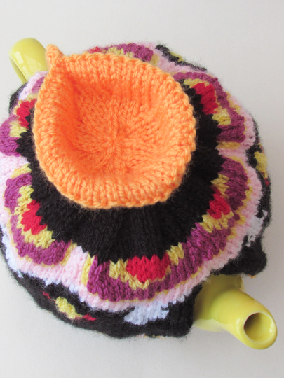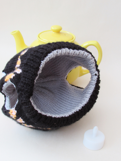 The tea cosy is knitted on 4.00mm knitting needles throughout, but this wouldn't be thick enough to keep the teapot hot during the dark winter months, so the tea cosy has a knitted lining making it super thick.
