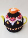 It has a brightly coloured patterned design that really zings against the black of the main cosy. Diwali being the festival of light I wanted the pattern so show the contrast between light and dark, and this tea cosy is a celebration of light and colour.