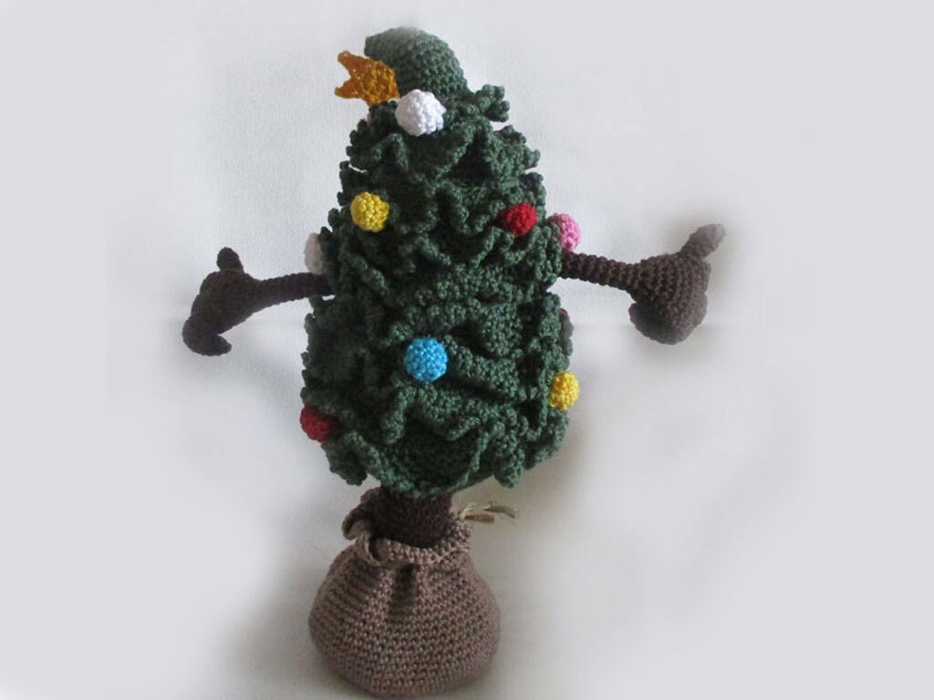 Phildar cotton : 2 x green for tree, 1 x dark brown, a little bit pink, 1 x beige / light brown, a little bit gold/yellow, a little bit white, various colours leftover yarn (= for the Christmas balls)