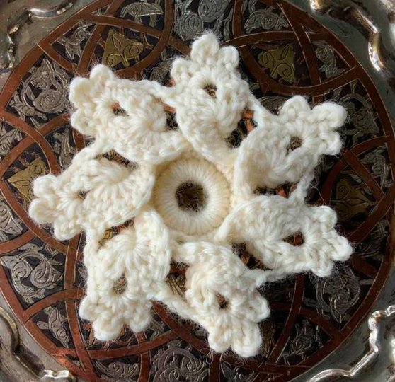 ich benutze eine Wolle die auf 50 gr - 80 m hat und die Häkelnadel 3,5 und hier häkele ich eher fest...das ist gut für die Form der Schneekristalle