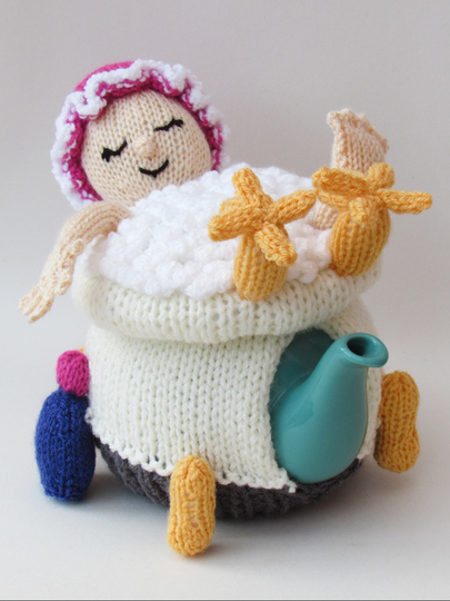 This tea cosy is perfect to knit for people who love luxury bubble baths.
