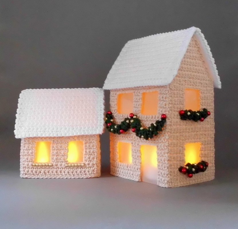 The light houses can be crocheted, even by beginners with a little practice, in the colors of your choice and decorated according to your personal taste: Christmassy with fir garland and Christmas wreath, neutral and noble with gold or silver decorative elements or cheerfully colorful for the whole winter.