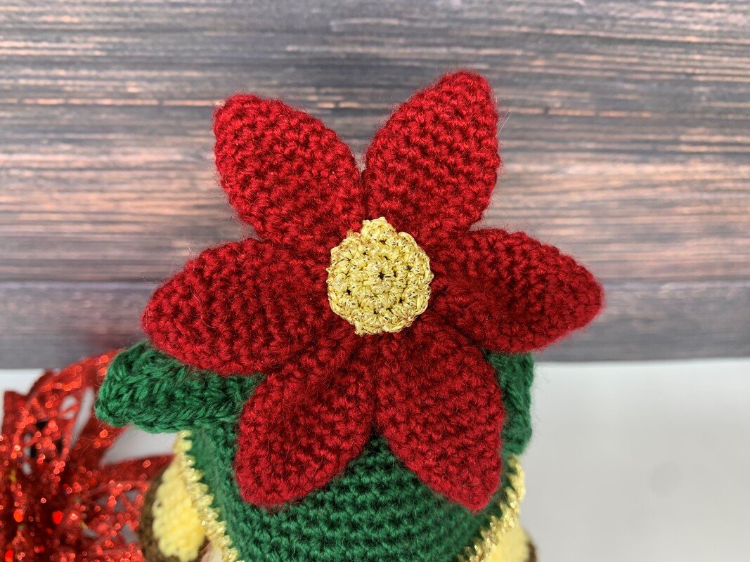 An adorable little gnome with a poinsettia on his hat has jumped off the hook and wants to spread Christmas magic!