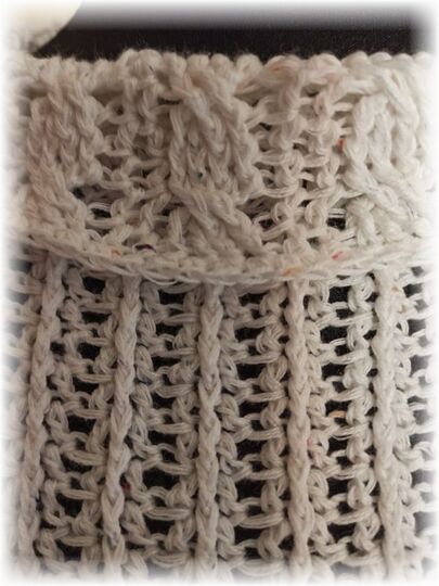 Das Muster nun beliebig weiter häkeln. Ich habe 55 cm gehäkelt und dann mit dem Zopfmuster begonnen.