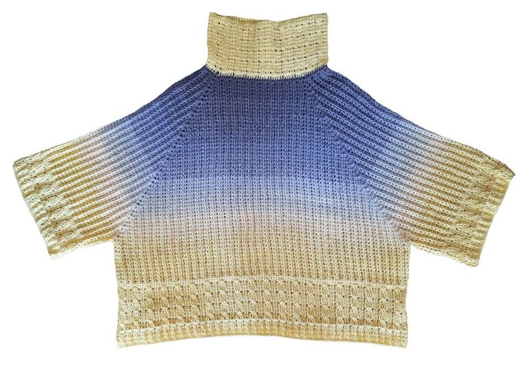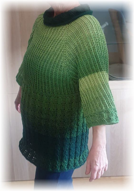 Celeste ist ein schöner lockerer Poncho Pullover mit dichtem Muster.