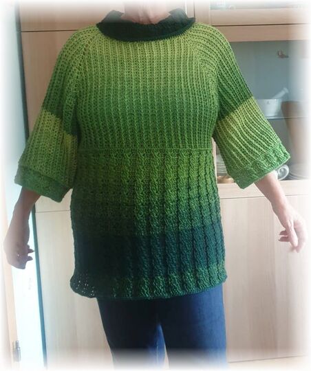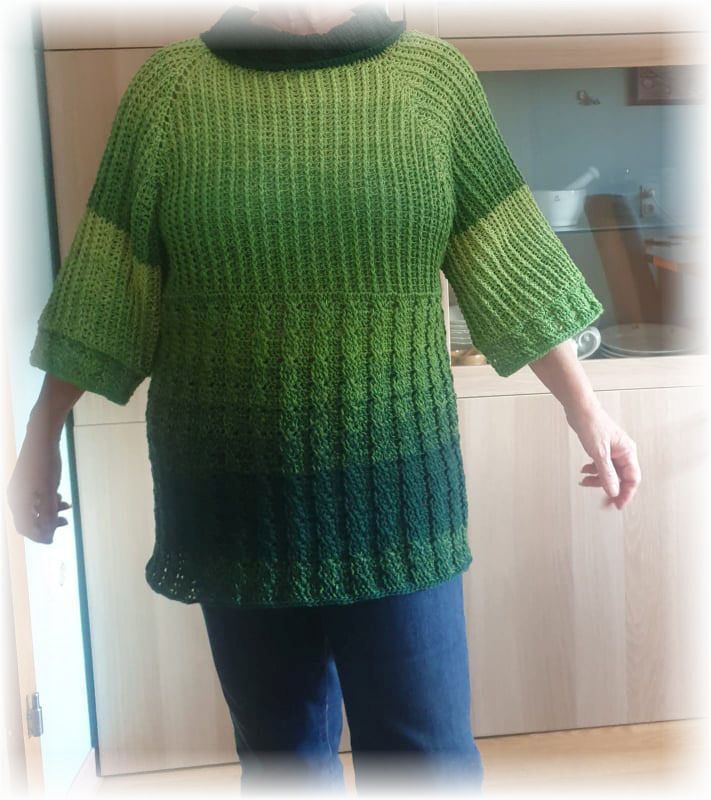 So ist es auch möglich einen enger anliegenden Pullover oder ein Kleid zu häkeln.