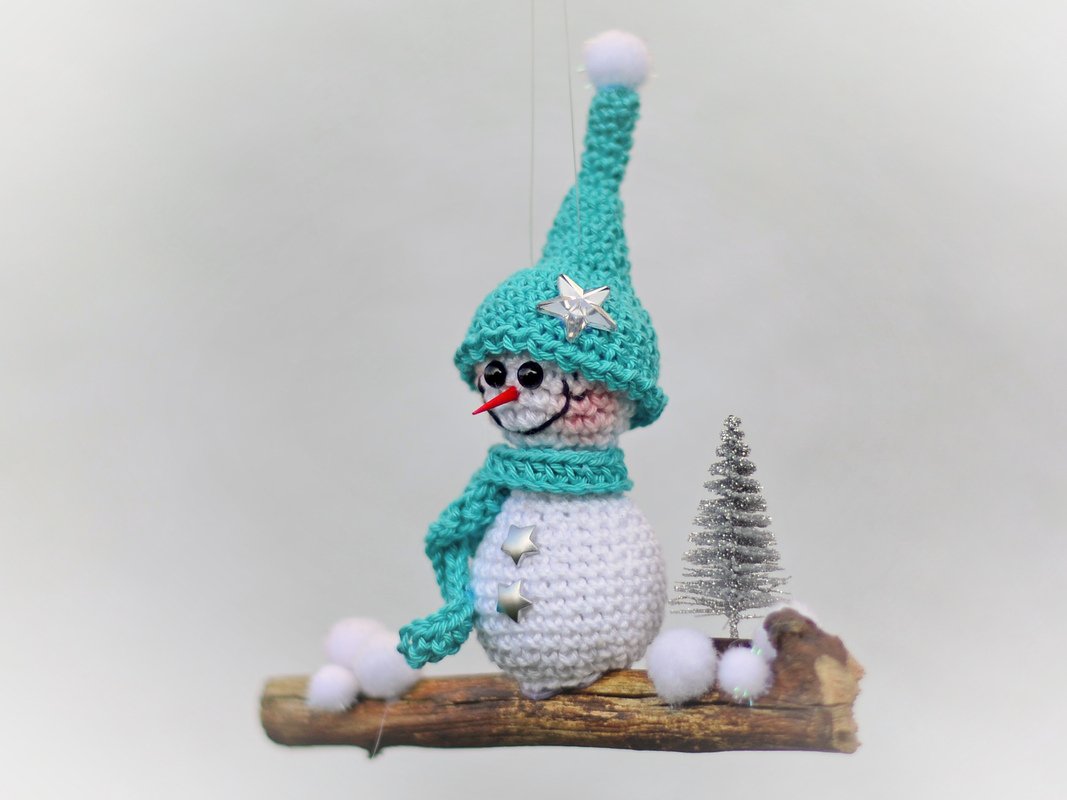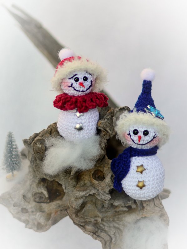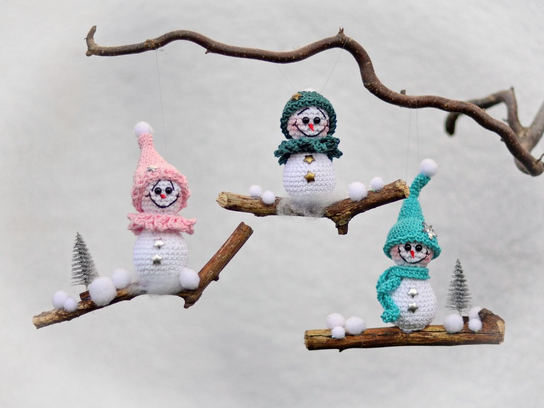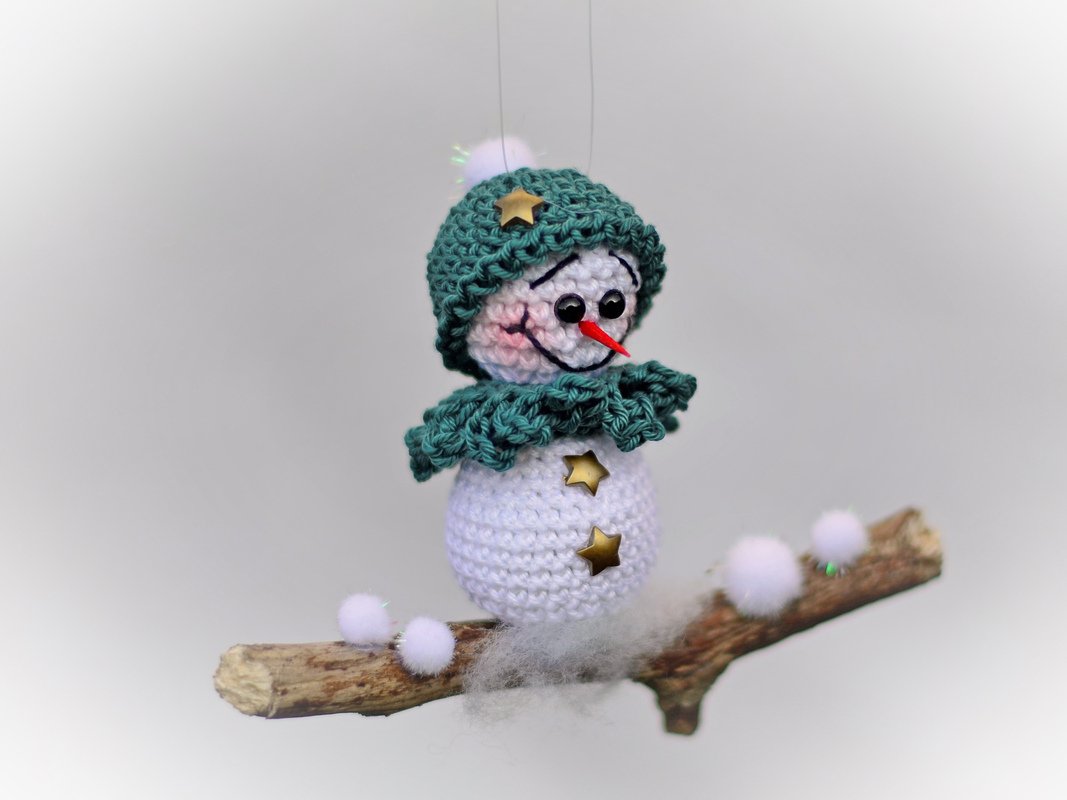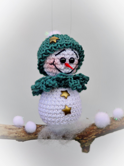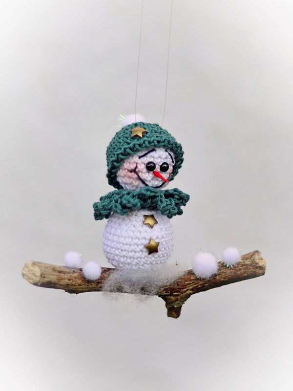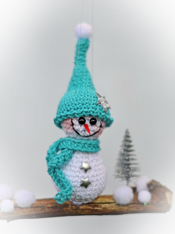 Häkelanleitung kleiner Schneemann zum Hängen oder Stellen