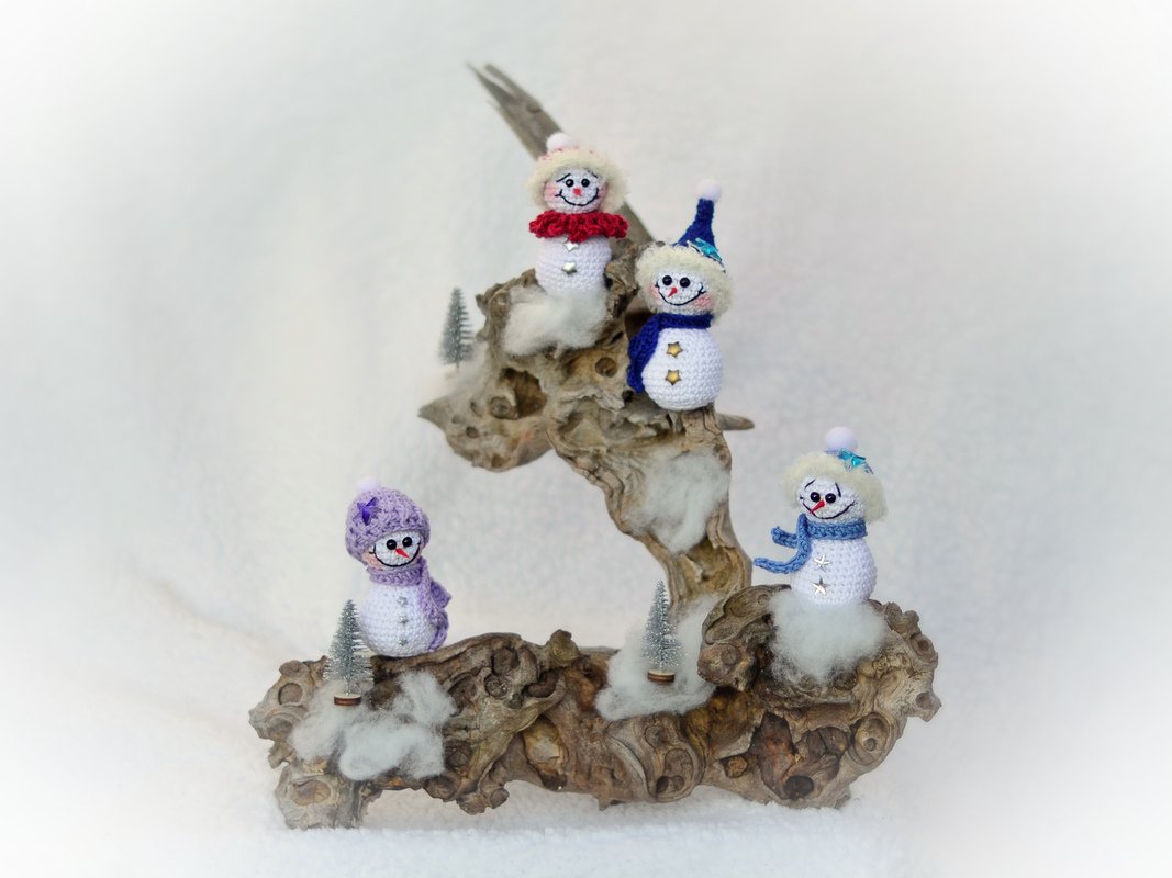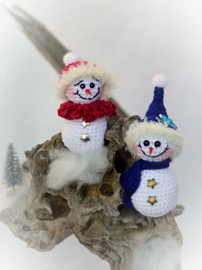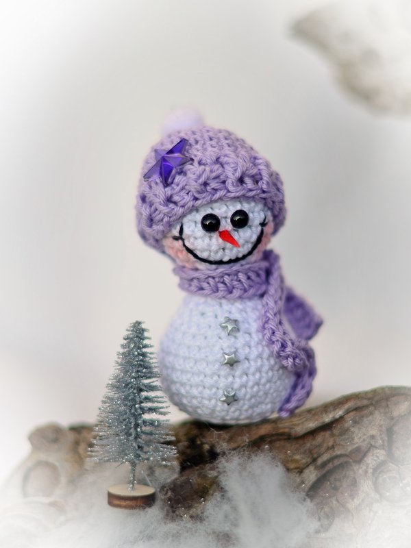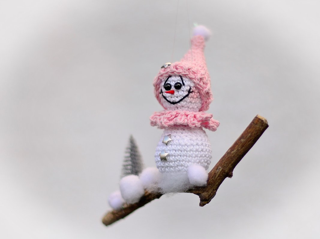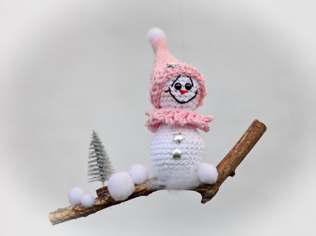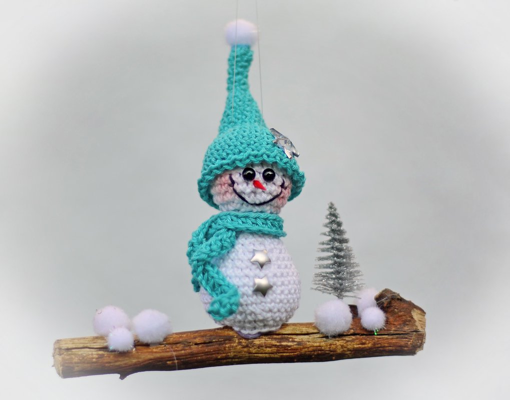 Häkelanleitung kleiner Schneemann zum Hängen oder Stellen