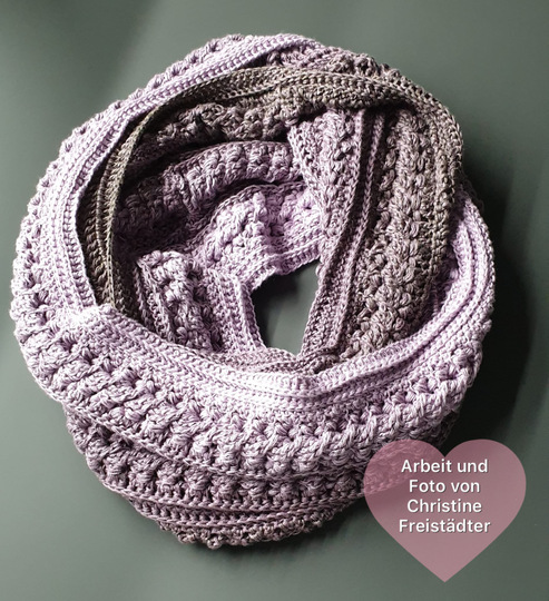 Hier erhälst du die Anleitung für den Loop „Braidithe“. Der Loop, der in etwas abgewandelter Form bereits aus dem Braidithe Halbmondtuch bekannt ist. Das Besondere an diesem Loop ist, dass sich hier, wie beim Tuch auch, immer wieder die Häkelrichtung komplett ändert.