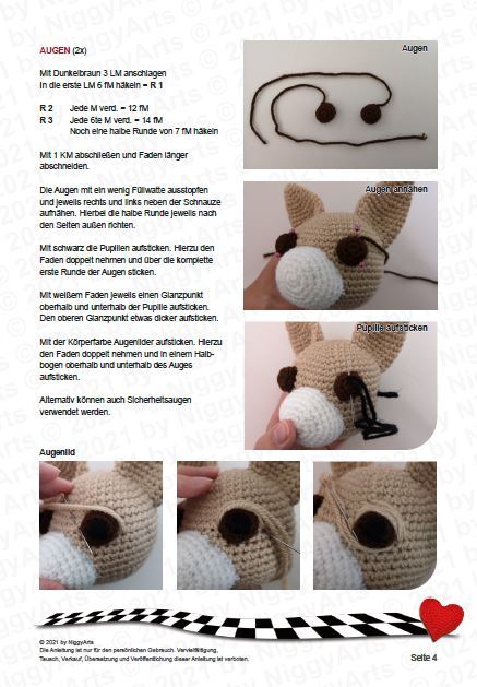 In this tutorial I explain how you can crochet a realistic looking Chihuahua. He looks almost alive like a real Chihuahua. With the specified yarn, he is also almost as big as a living Chihuahua.