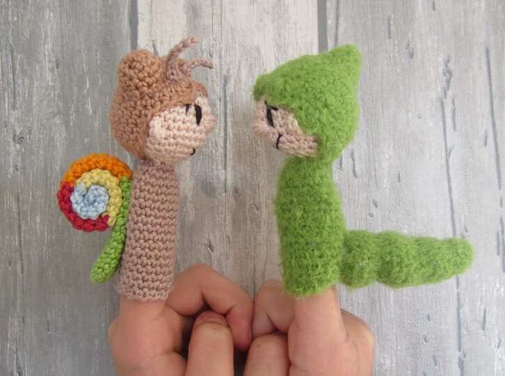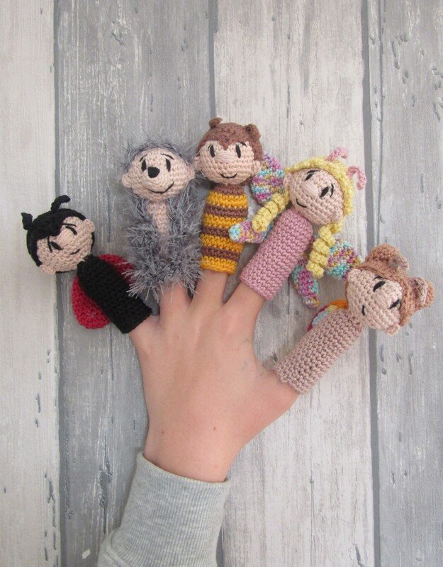 Fingerpuppen mag ich einfach total , sie sind flott aus Baumwollresten zu häkeln und man hat immer ein schnelles und persönliches Mitbringsel.