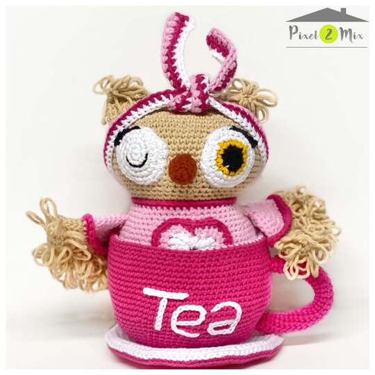 Olivia is a stubborn owl. She enjoys doing what she likes. She can drink tea from a tea cup, of course, but Olivia likes it much more to just sit in it.