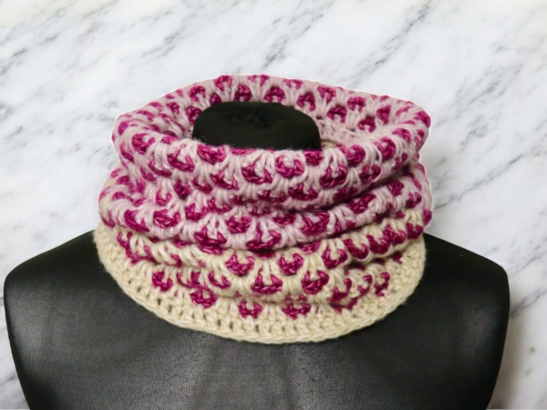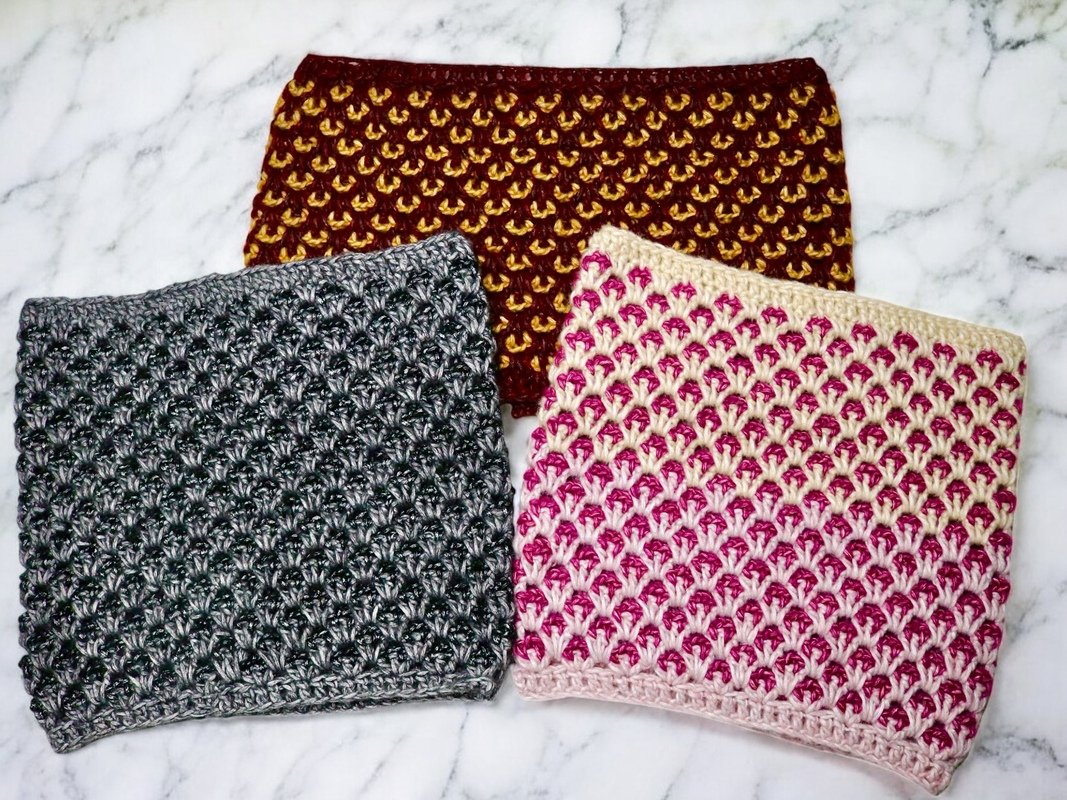Das Muster geht sehr einfach und ist Schriftlich, als Bilder und Häkelschriftanleitung ausführlich beschrieben. Als Loop, als Möbius oder Schal häkeln.
