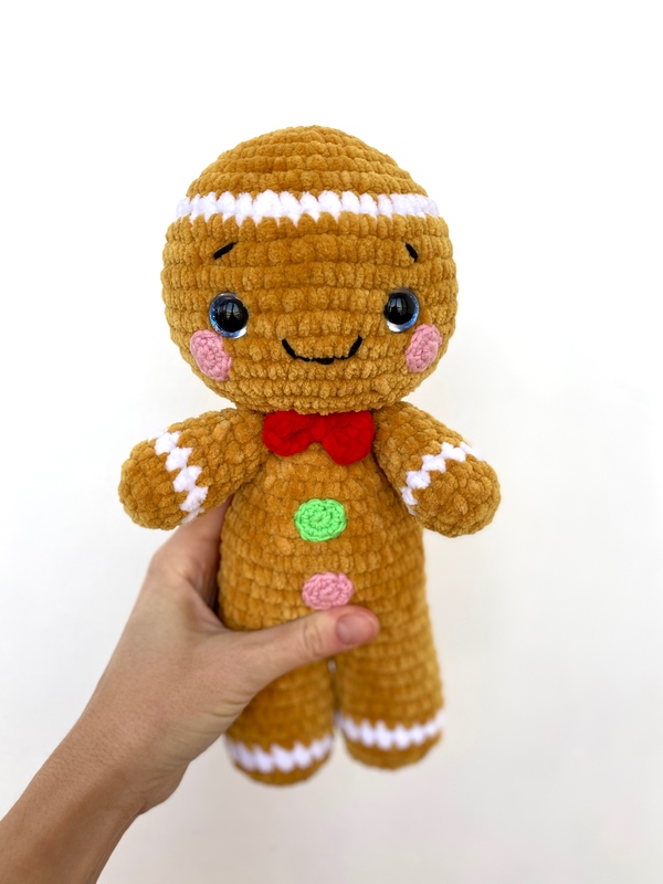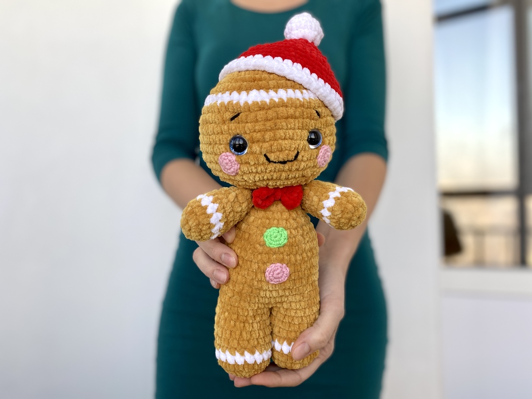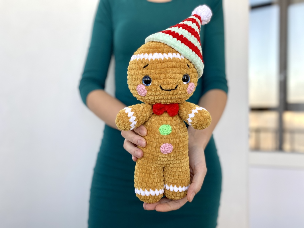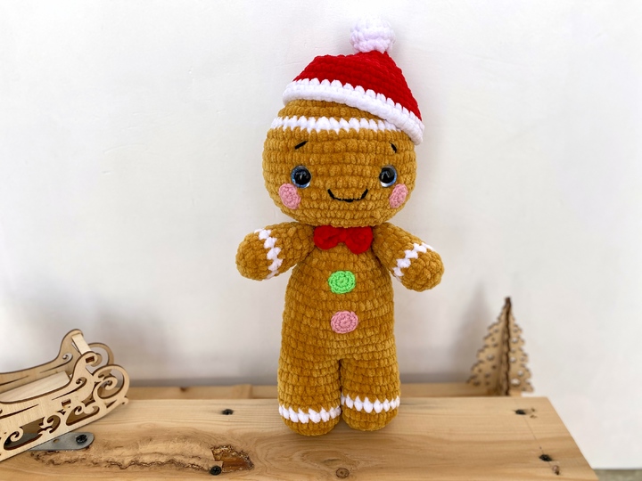 Crochet your own adorable plush gingerbread man in christmas look in just a 5-6 hours!
