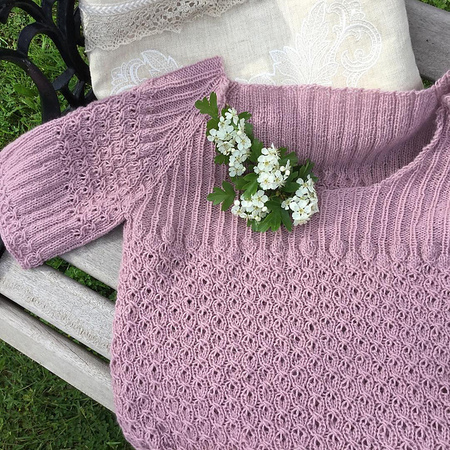 Die Fleury Pullover/Tunika wird zuerst in Reihen als Raglan von oben gearbeitet. Sobald der Halsausschnitt beendet ist, wird zur Runde geschlossen.
