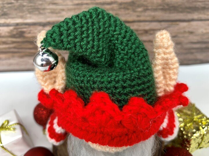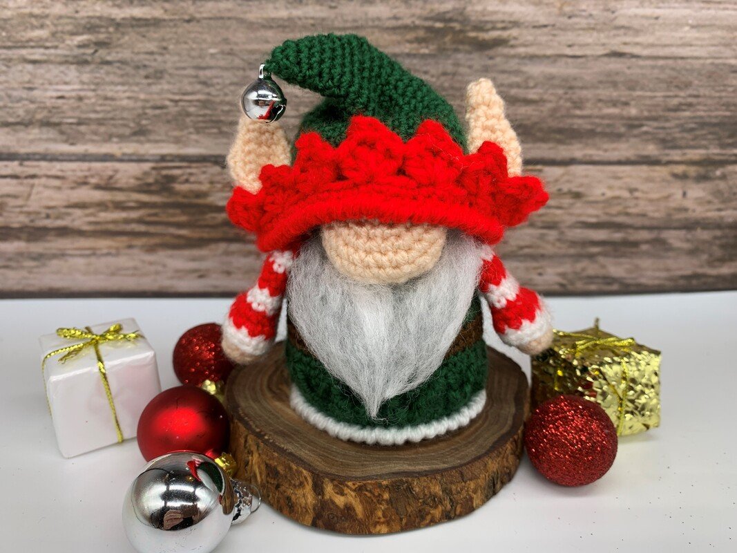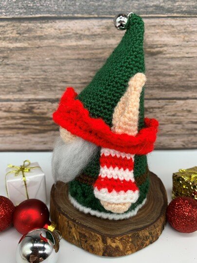 What can not be missing at Christmas? A little elf!!! This gnome has dressed up in his best robe, put on the cap with the little bell and is busy helping Santa with the presents!