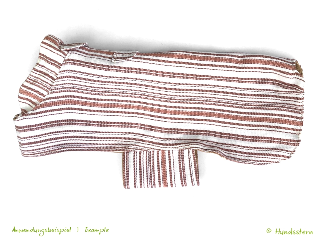 [Even more options are available with the separately obtainable add-on pack: chest-belly-strap, hood, high turtleneck collar, patch pockets https://www.crazypatterns.net/en/items/77229/add-on-pack-for-dog-coat-pelerin-sewing-patterns]
