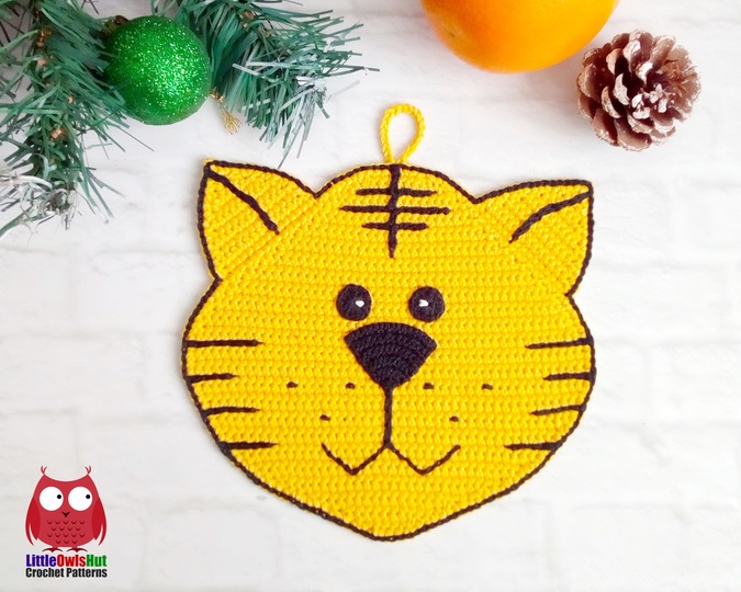 Note: I used two strands of yarn and a crochet hook 2mm for the main part and one strand of yarn and crochet hook 1 mm for the eyes and the nose. Finishing is made using one strand and a 2mm crochet hook.