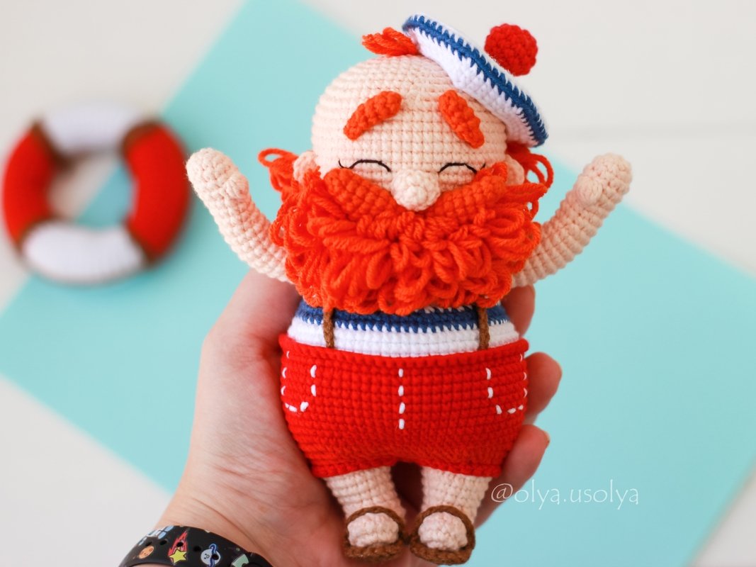 With this crochet patterns you can Crochet stuffed amigurumi toys "Santa Claus on vacation (Grandpa Sailor)" according to the original pattern by Olya Usolya.