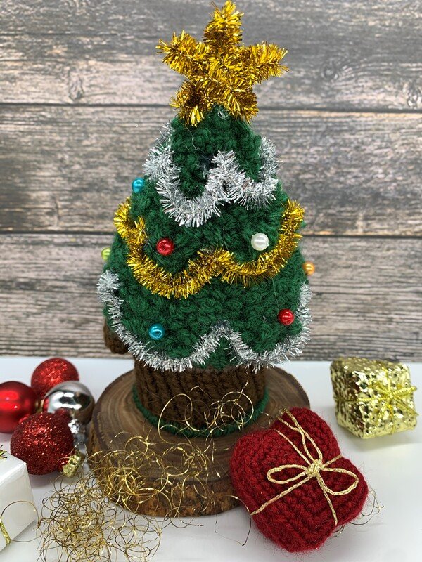 This little gnome has a festive Christmas tree as a hat, he is already very excited about all the gifts he hopes to get!