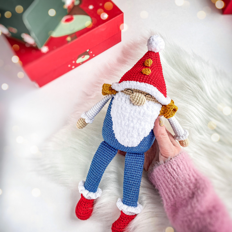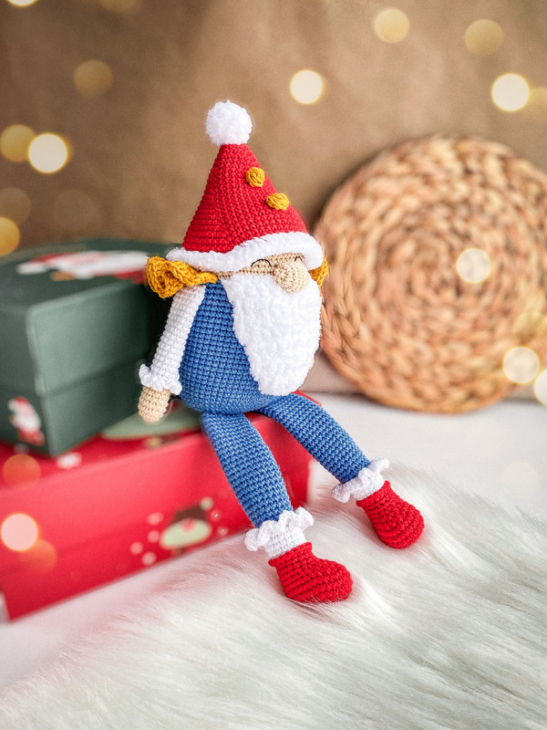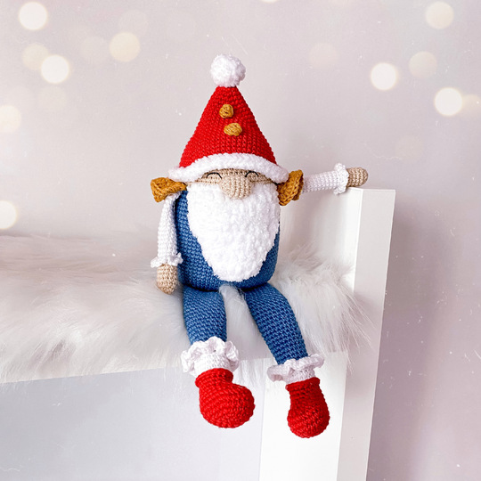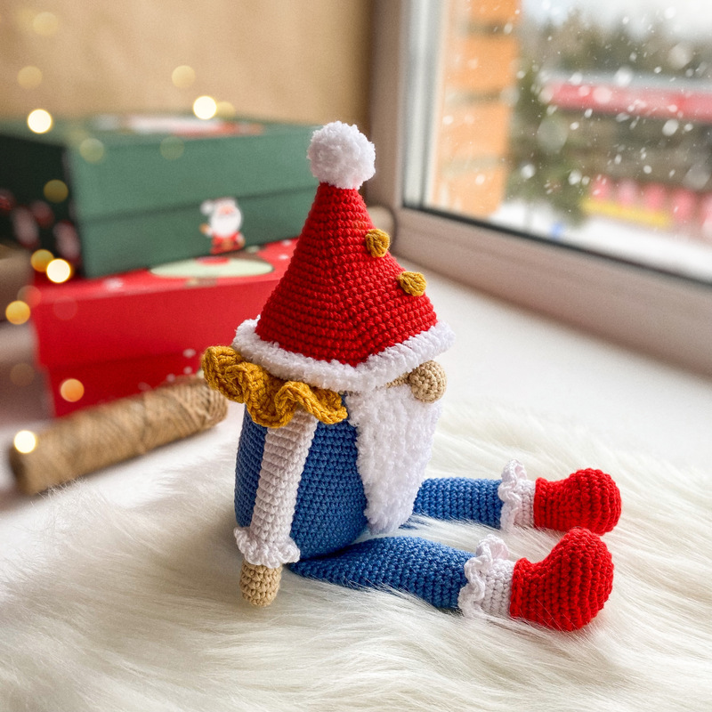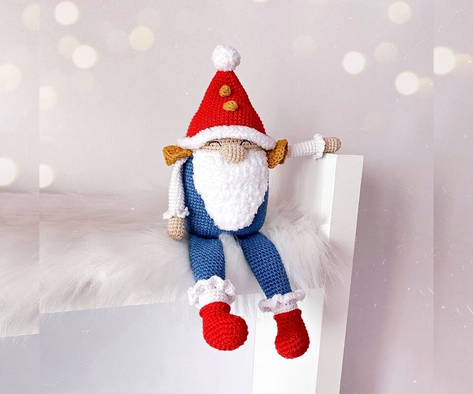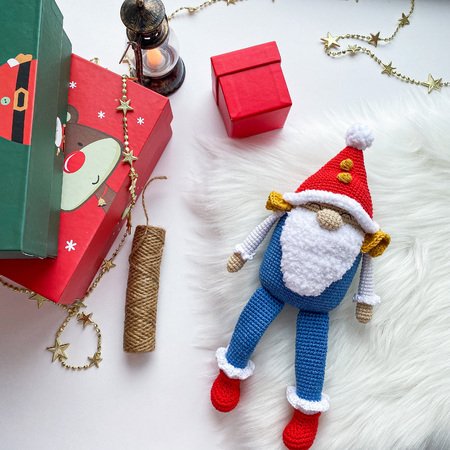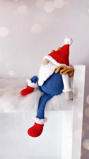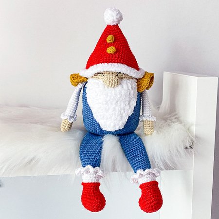 Gnome is about 12 inches when standing and about 7 inches when sitting, If you use cotton yarn (50g/160m). The final size of the item depends on the yarn thickness, the hook size and the density of crocheting, so it may slightly differ from noted in the pattern.