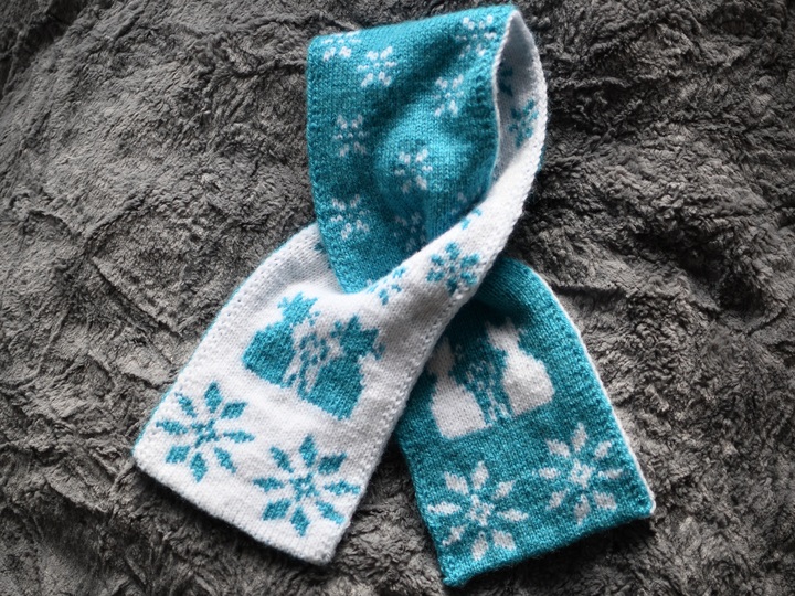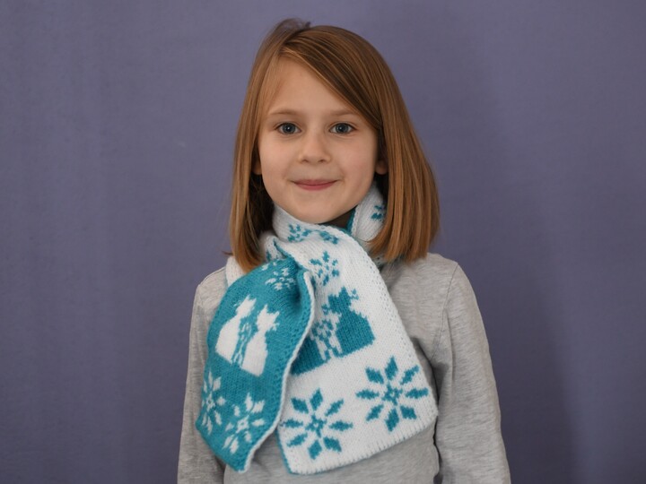 This scarf with the adorable kitties on a snowy winter day is the perfect accessory for all little and grown-up cat lovers! For young children I recommend the keyhole version as described in detail in this pattern. For older children or adults you can work the scarf longer and without keyhole.