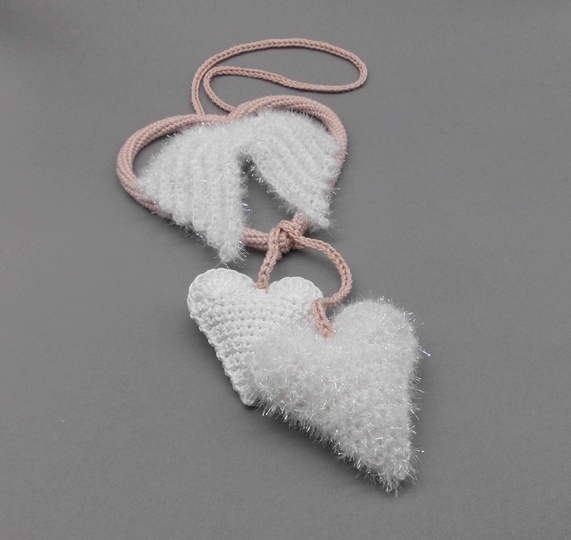 Der Deko-Hänger mit den Engelsflügeln und den Herzen kann, auch von Anfängern mit etwas Übung, ganz einfach und schnell nachgemacht werden. Und da Du nur wenig Garn für den Deko-Hänger benötigst, kannst Du mit ihm Deinen Wollresten zu neuem Glanz verhelfen.