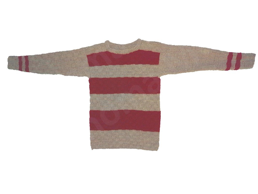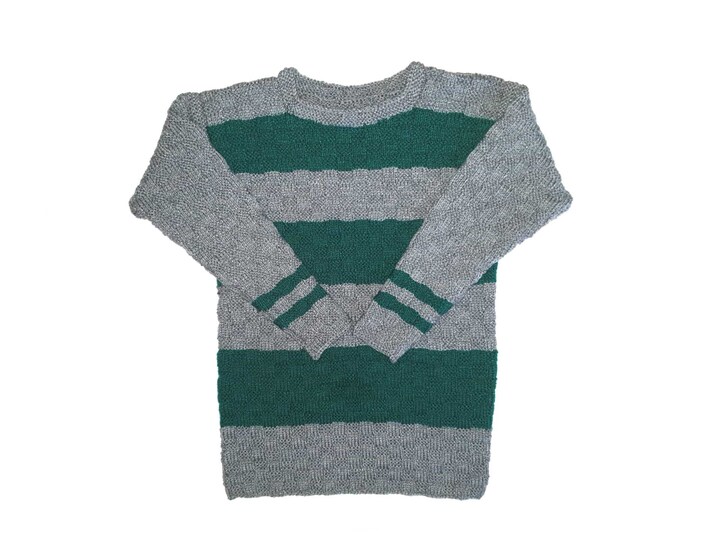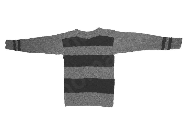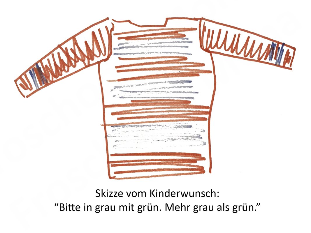 Der Pullover ist am Rumpf etwas länger, damit er nicht so schnell zu klein wird.