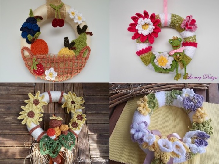 Ein Set bestehend aus vier unterschiedlichen Kränzen .Ob nun Blumen oder Amigurumi hier ist für jeden etwas dabei.