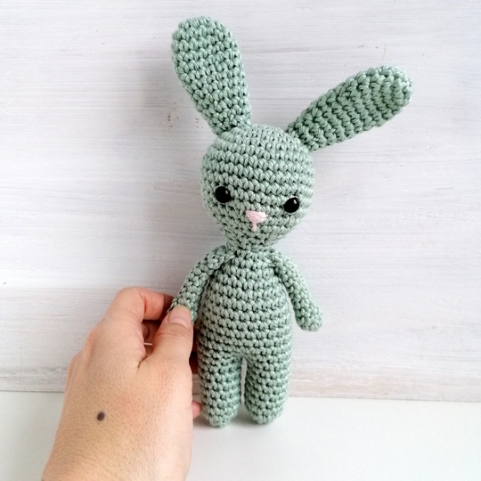 • 1 oz/30 g yarn for the bunny, a small piece of yarn in a contrast color for the nose and bow, I used Puppets Lyric